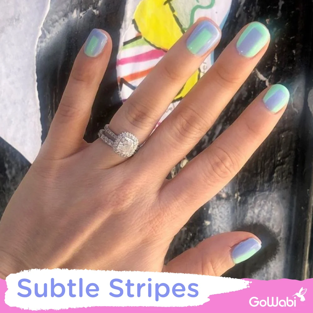 Subtle Stripes สไตล์นี้เป็นการทาเล็บสองสีสลับด้านในและด้านนอก ที่ทำมาแล้วพูเผินๆ เหมือนสีโฮโลแกรมเลยล่ะ ใครชอบสไตล์นี้ก็อย่าลืมไปถามตาม หรือถ้าไม่ชอบสีลองสลับสีหรือเปลี่ยนสีเป็นแบบอื่นก็น่าลองนะคะสาวๆ