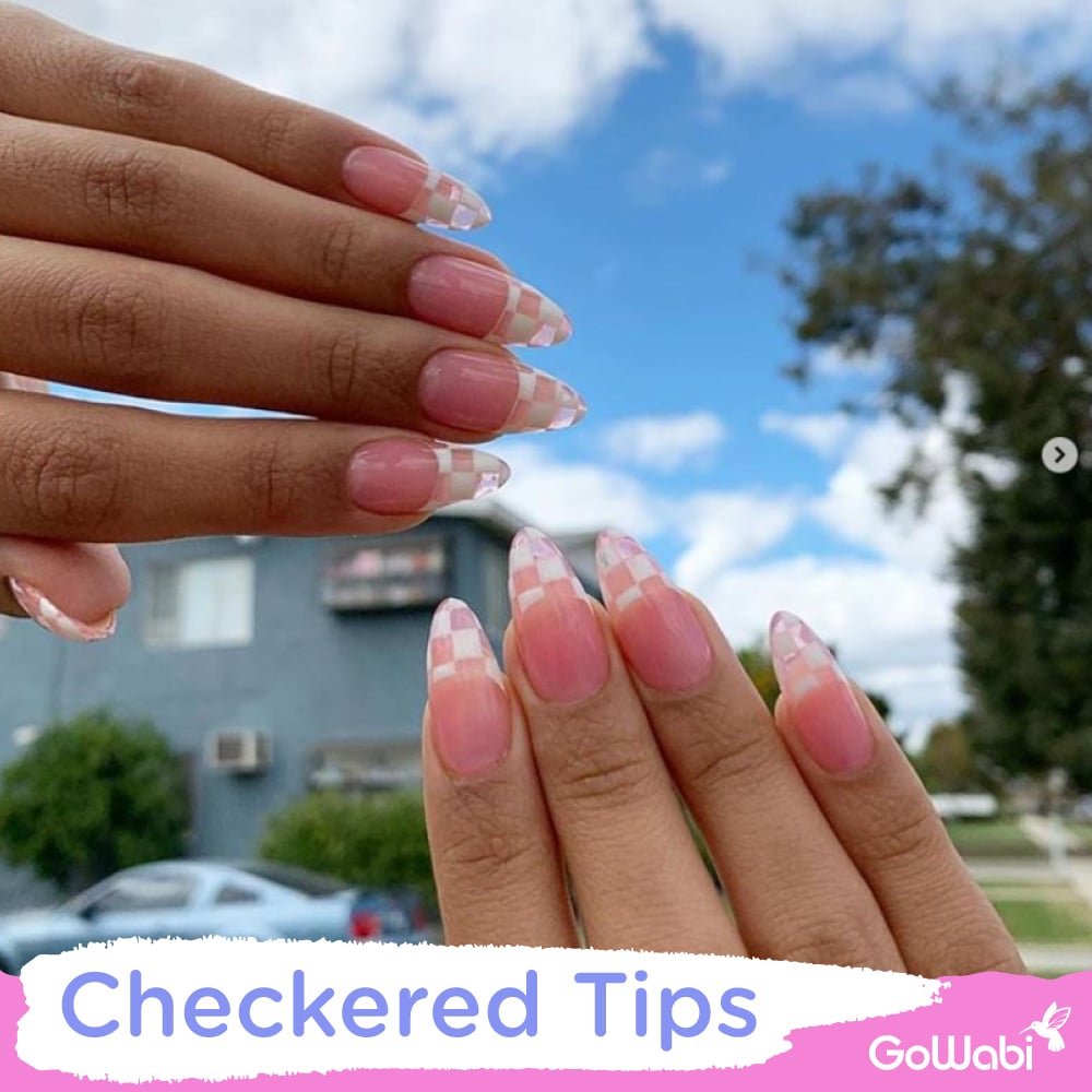 Checkered Tips ลายนี้เป็นลายสไตล์ตารางหมากรุก ด้วยการรองพื้นเล็บด้วยสีพื้นแล้วเลือกเพ้นท์ที่ปลายเล็บเป็นตารางหมากรุก ลายนี้อาจจะเหมาะสำหรับสาวๆ ที่เล็บยาวสักหน่อย ด้วยดีเทลที่ต้องแบ่งช่วงเพ้นท์สี สาวๆ เล็บสั้นก็ต้องไปต่อเล็บเพิ่มกันก่อนนะจ๊ะ