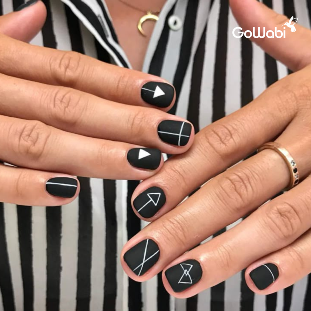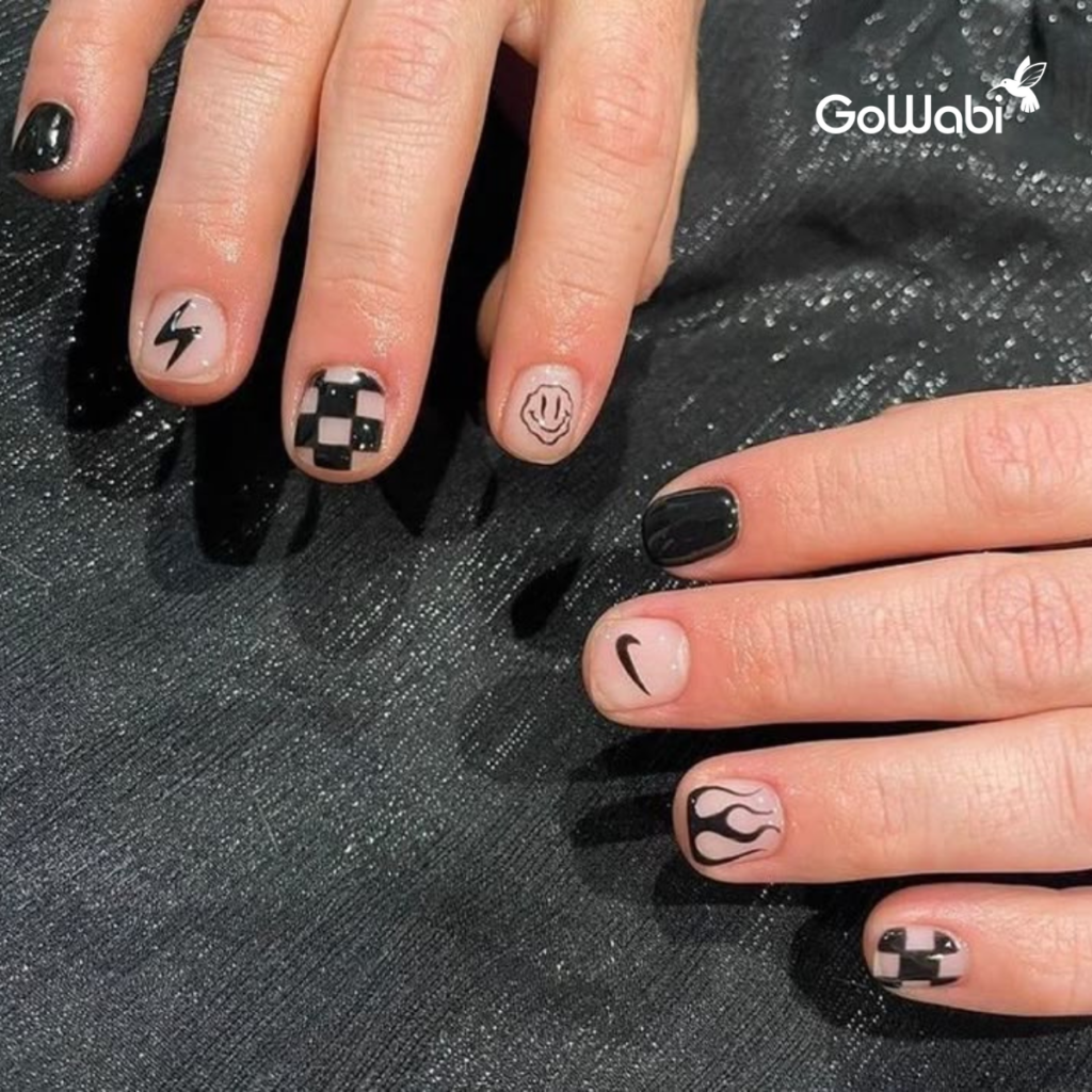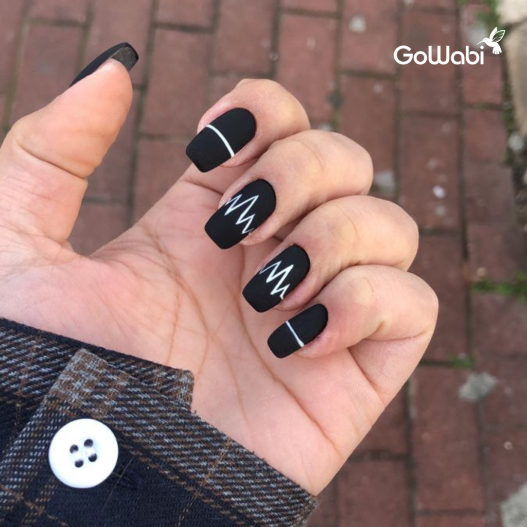 สำหรับคนที่ชอบความเรียบง่ายแต่มีดีเทล ลองเพิ่มเส้นสีขาวบาง ๆ หรือจุดเล็ก ๆ บนพื้นเล็บสีดำ จะช่วยให้ดูมีลูกเล่นแบบพอดี ๆ ไม่เยอะไป ลวดลายเล็ก ๆ จะช่วยให้ลุคดูมีเสน่ห์ขึ้นโดยไม่ดูเยอะจนเกินไป เหมาะกับหนุ่ม ๆ สายมินิมอลที่อยากได้ลายเล็บที่ดูมีสไตล์แต่ยังคงความเรียบง่าย สามารถจับคู่กับนาฬิกาเรียบหรูหรือเครื่องประดับแนวสตรีทเพื่อเพิ่มลูกเล่น และยังเหมาะกับทุกโอกาส ไม่ว่าจะเป็นงานทางการหรือลุคเที่ยวเล่นในชีวิตประจำวัน