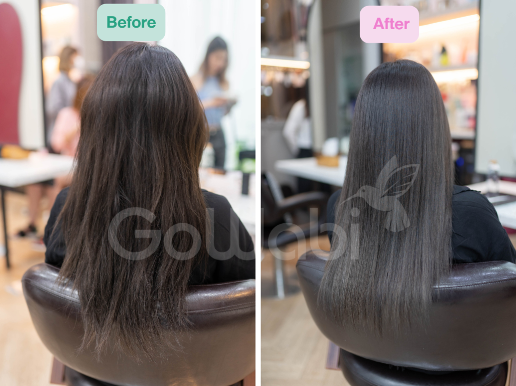 ผลลัพธ์หลังการทำทรีตเมนต์บำรุงเส้นผมด้วยเคราตินที่ Inspired by Nuch ที่ The Commons