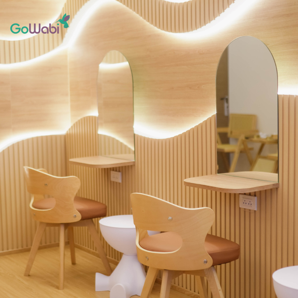 ร้านสวย บรรยากาศดี ตกแต่งด้วยมู้ดโทนสไตล์ญี่ปุ่น เข้ามาแล้วให้ความรู้สึกผ่อนคลาย