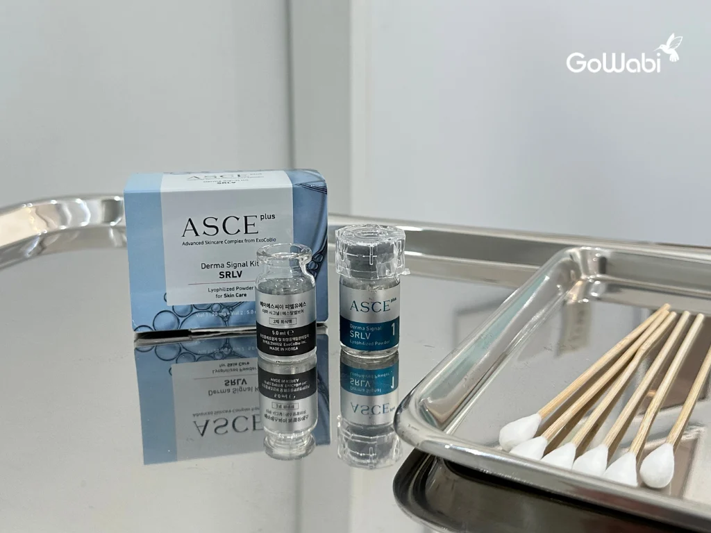 ตัวผลิตภัณฑ์ที่สายรุ้งจะทำการฉีดในวันนี้ก็คือ ASCE Exosome > โปรแกรม Exosome Baby Face ซึ่งเป็น exosome ที่พัฒนาจากงานวิจัย เป็นสูตรพิเศษเฉพาะของ L.A.B.X มีส่วนผสมของ ASCE และ growth factor ตัวอื่น ๆ เพื่อการซ่อมแซมเซลล์ผิวทั้งภายนอกและภายในค่ะ