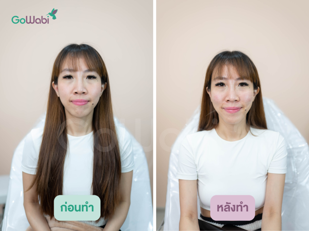 หลังฉีดเสร็จ 1 ข้างก็คือเห็นความแตกต่างมาก ๆ ยิ่งฉีดครบทั้ง 2 ข้างรู้สึกได้เลยว่าหน้าดูมีมิติมากขึ้น ใต้ตาที่ดูลึกก็ดูตื้นขึ้น หน้าดูกระชับขึ้น รู้สึกหน้าดูเด็กและสดใสขึ้นกว่าตอนฉีดมาก ๆ