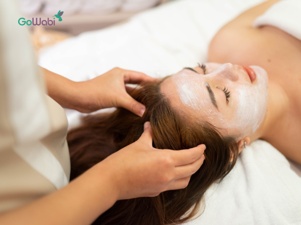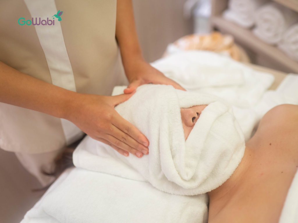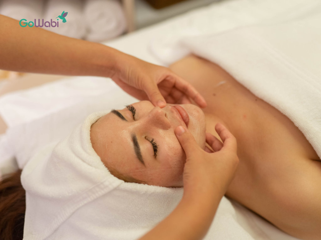 แถมยังช่วยกระชับรูขมขน และบำรุงใบหน้าของเราอีกด้วย ก่อนขั้นตอนสุดท้าย ระหว่างที่กำลังมาสก์หน้าก็จะมีบริการนวดบริเวณหน้าอก ไหล ผ่อนคลายมาก รู้สึกได้รับการบำบัดทั้งตัวเลย