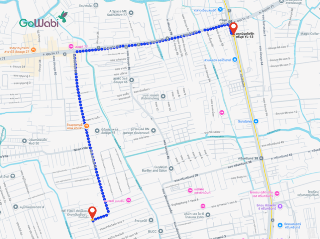 การเดินทางมาที่ร้าน แนะนำให้เดินทางมาด้วย BTS สายสีเหลือง ลงสถานีศรีนุช ทางออก 4 แล้วต่อวินมอเตอร์ไซค์อีกไม่กี่นาทีเข้ามาได้เลยค่า บอกพี่วินให้ขับไปทาง ถนน สุขุมวิท 77 (อ่อนนุช) แล้วเลี้ยวเข้า ซอยอ่อนนุช 44 (ซอยสามพี่น้อง) มาง่ายมากก ๆ เราเชียร์ให้มาด้วยวิธีนี้ที่สุด เพราะตอนนี้ที่ร้านยังไม่มีที่จอดรถนะค้า