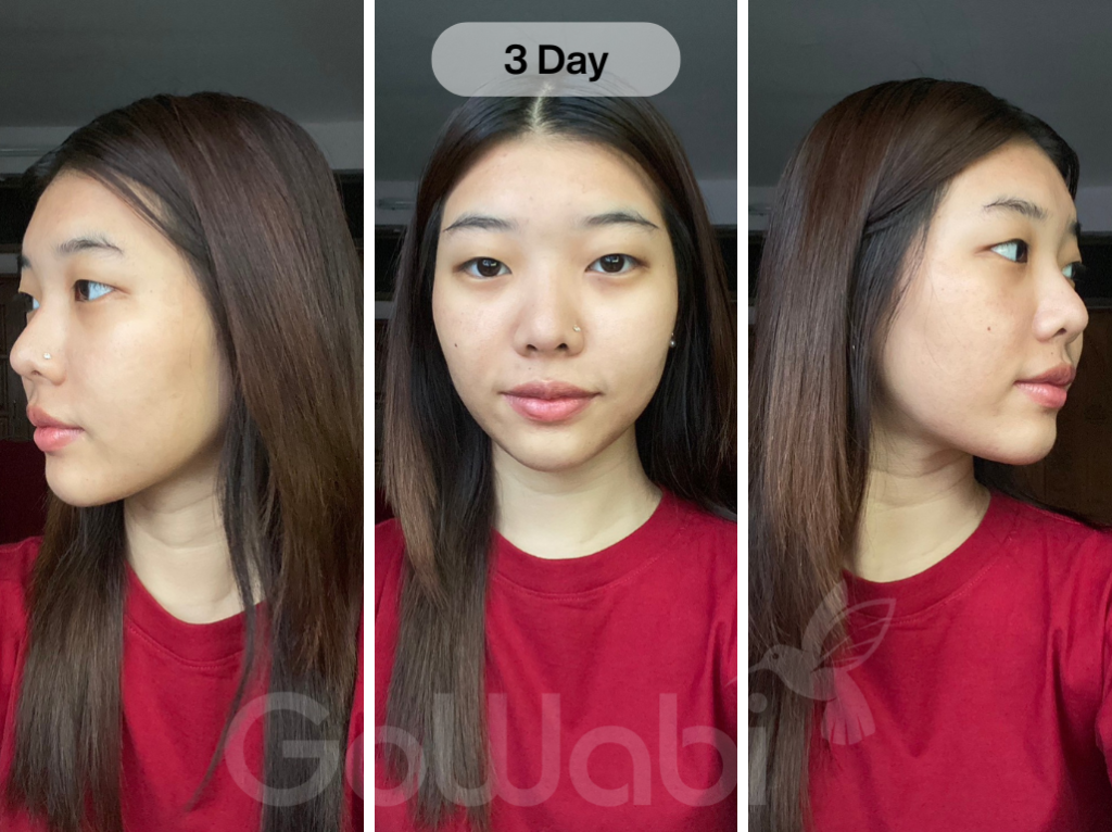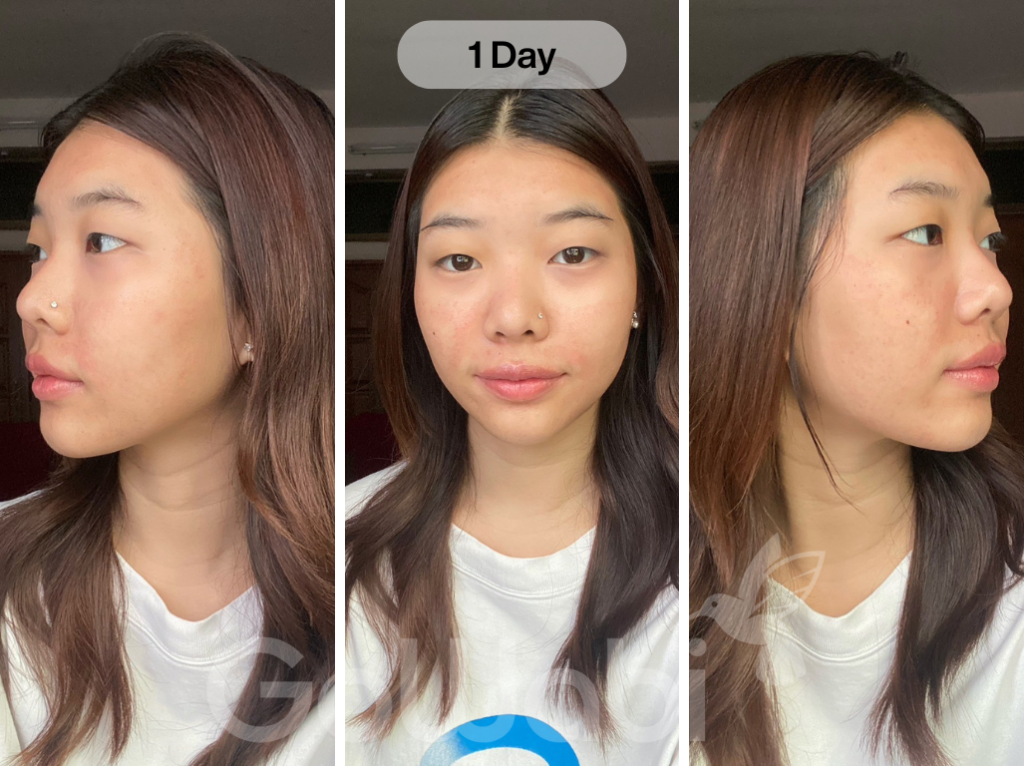 หนึ่งในความกังวลของพั้นตอนแรกคือเรื่องพักหน้าค่ะ เพราะชีวิตประจำวันต้องออกไปเจอผู้คนทุกวัน แต่หลังจากทำเสร็จ พั้นพบว่าผิวไม่ได้ลอกหรือแดงมากอย่างที่คิด ตอนแรกพั้นกลัวว่าหน้าจะมีเลือดสาด แต่ผิวหน้าหลังทำทันทีมีความแดงเฉย ๆ ค่ะ พักผิว 1 วัน ห้ามโดนน้ำ ห้ามสัมผัส พอเข้าวันที่ 3 หน้าของพั้นก็หายแดงไปเยอะเลยค่ะ วันที่ 7 หลังทำก็คือหน้ากลับมาเป็นปกติเลย รอยแดงหายไปแล้ว
