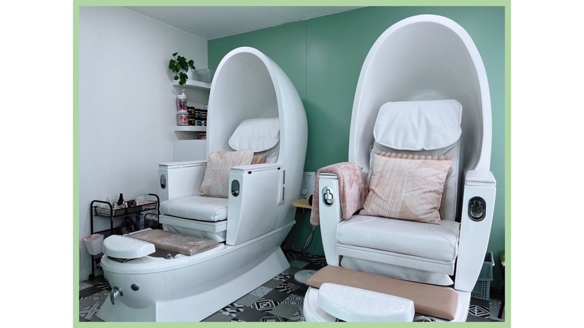 ร้านอยู่ในปั้มน้ำมัน มีเก้าอี้สปา 2ตัว มีสีให้เลือกแยะ